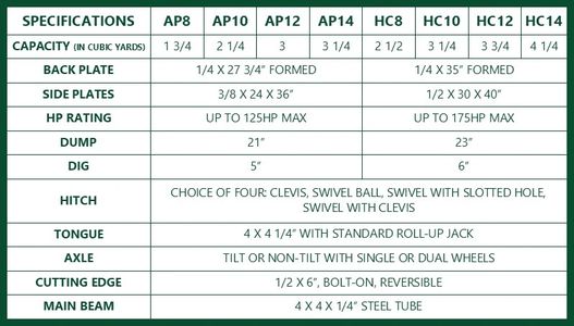 These scrapers are designed for commercial and industrial applications requiring the capacity and strength to do the job. When moving large amounts of material in general agricultural or construction projects with high horsepower tractors, these scrapers will fit the bill.