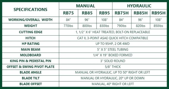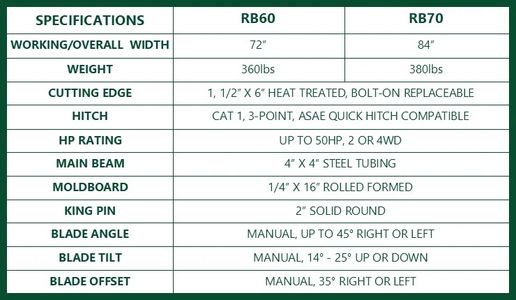 The most versatile rear blades on the market today with angle tilt features normally found on large expensive rear blades. Extremely versatile for dirt work, snow removal and clean up. Simple, yet very well built.